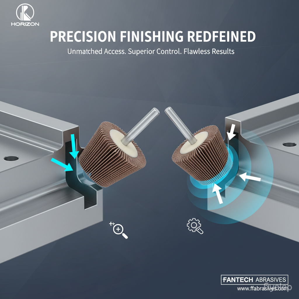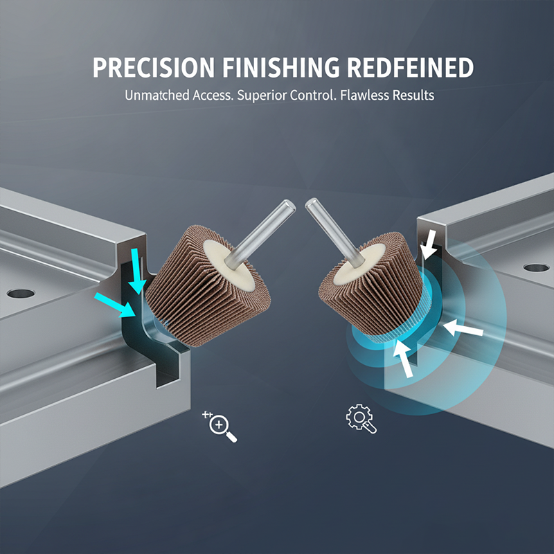 OEM/ODM supported: taper geometry (angle/tip size), OD/width/bore standards, flap density & hardness, abrasive system, core material and balance grade, and private label/packaging—engineered for profile and corner finishing requirements.
