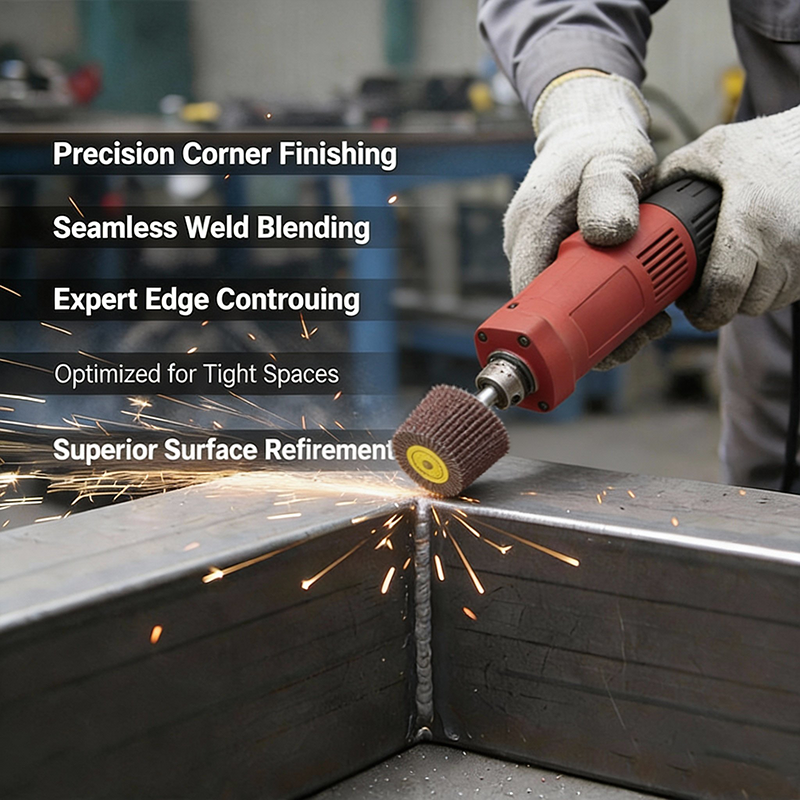 They are ideal for weld blending, profile dressing, edge brushing, and texture unification on contoured surfaces—especially where corner finishing is critical.
