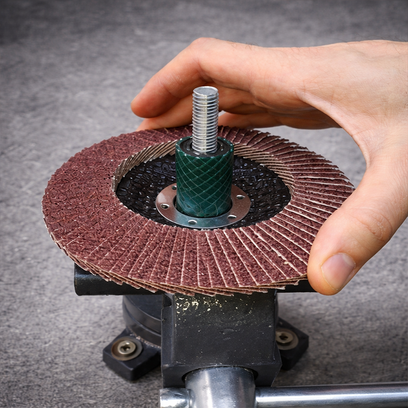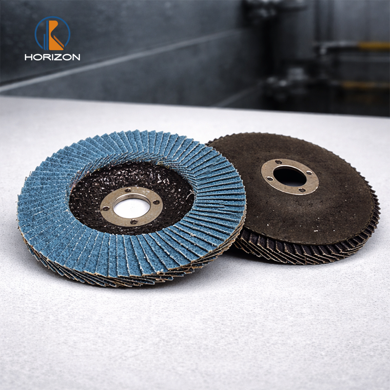 Multiple abrasive cloth flaps (commonly aluminum oxide / zirconia / ceramic coated cloth) are layered onto a fiberglass-reinforced backing plate. During operation, flaps engage progressively, delivering steadier cutting and smoother blending, while the fiberglass backing provides structural support and heat resistance.