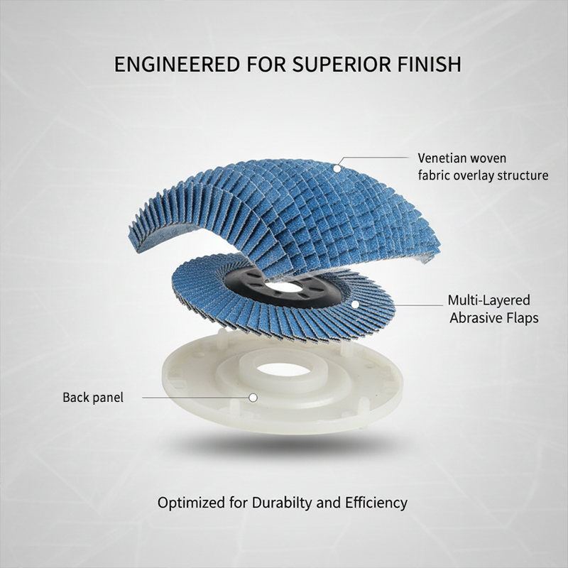 Metal backing flap discs consist of layered coated-abrasive flaps bonded to a metal backing plate (often steel/alloy). The metal backing brings: