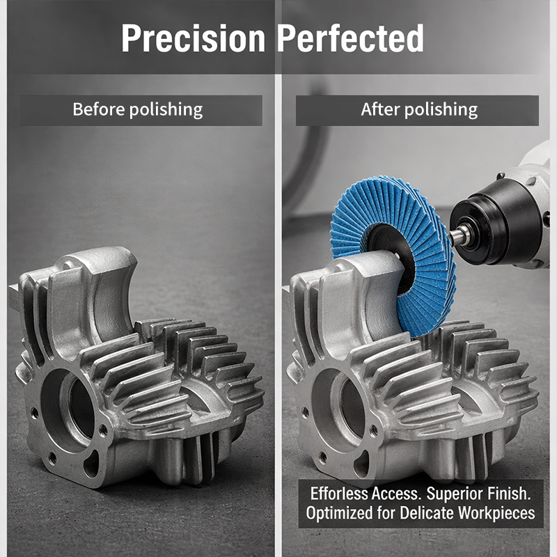 Mini flap discs combine a compact backing with layered abrasive flaps. They retain the flap disc advantages—continuous cutting and smooth blending—while improving control: